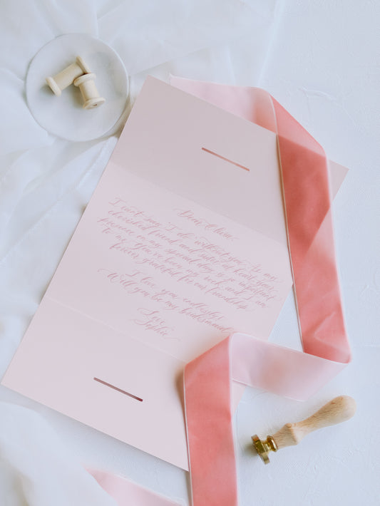 BRIDESMAID PROPOSAL CARDS WITH CALLIGRAPHY & VELVET RIBBON