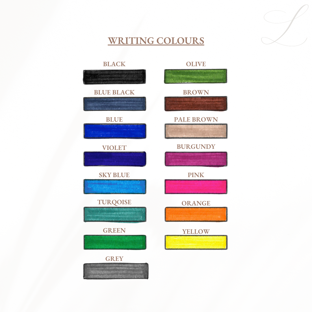 As our items are meticulously handmade and handwritten, it's important to note that slight imperfections may occur. We kindly ask you to double-check your name list and ensure that the final version is provided to us. Should any updates be necessary, please notify us promptly before or during production. Any costs associated with updates will be your responsibility.