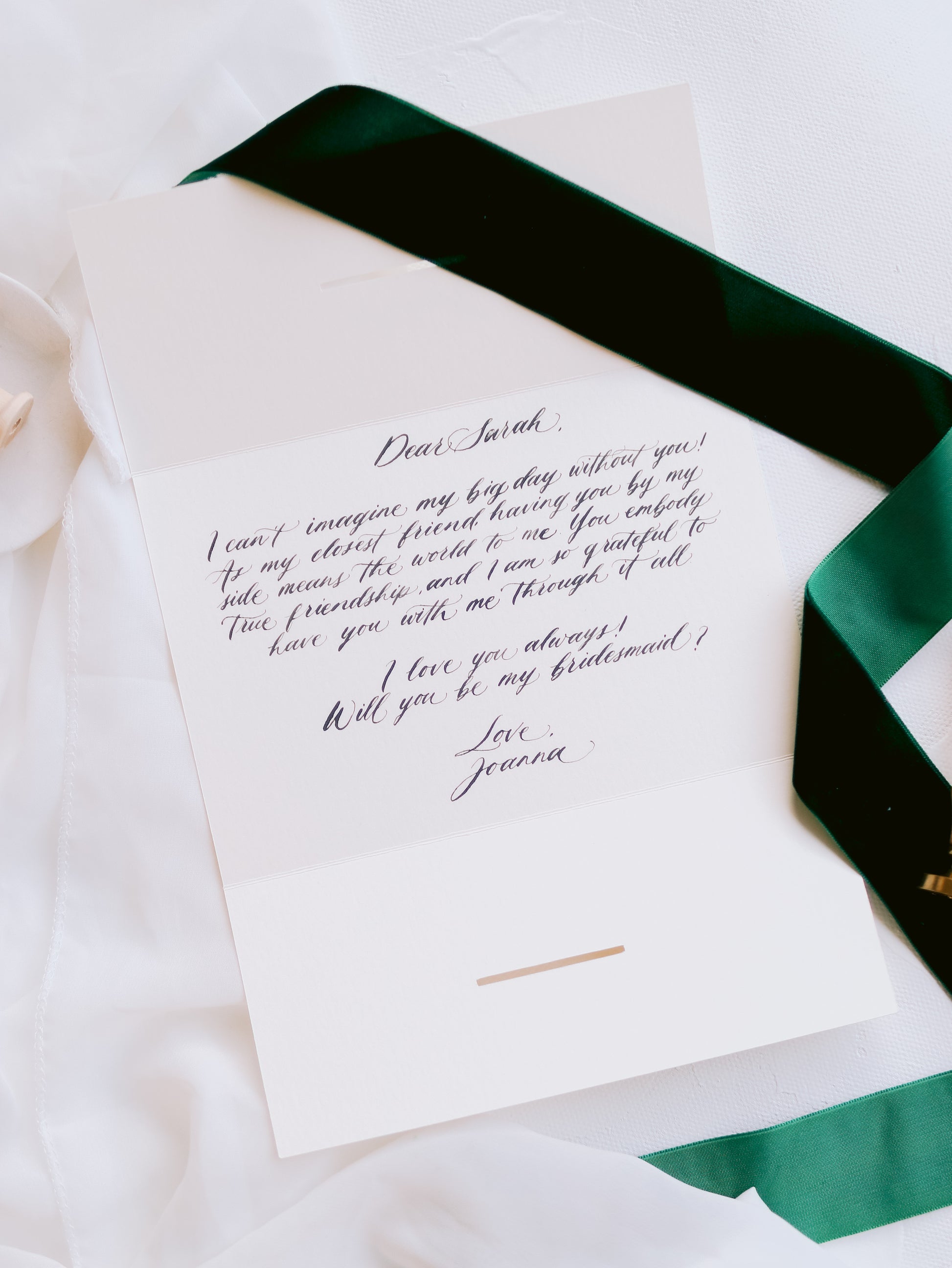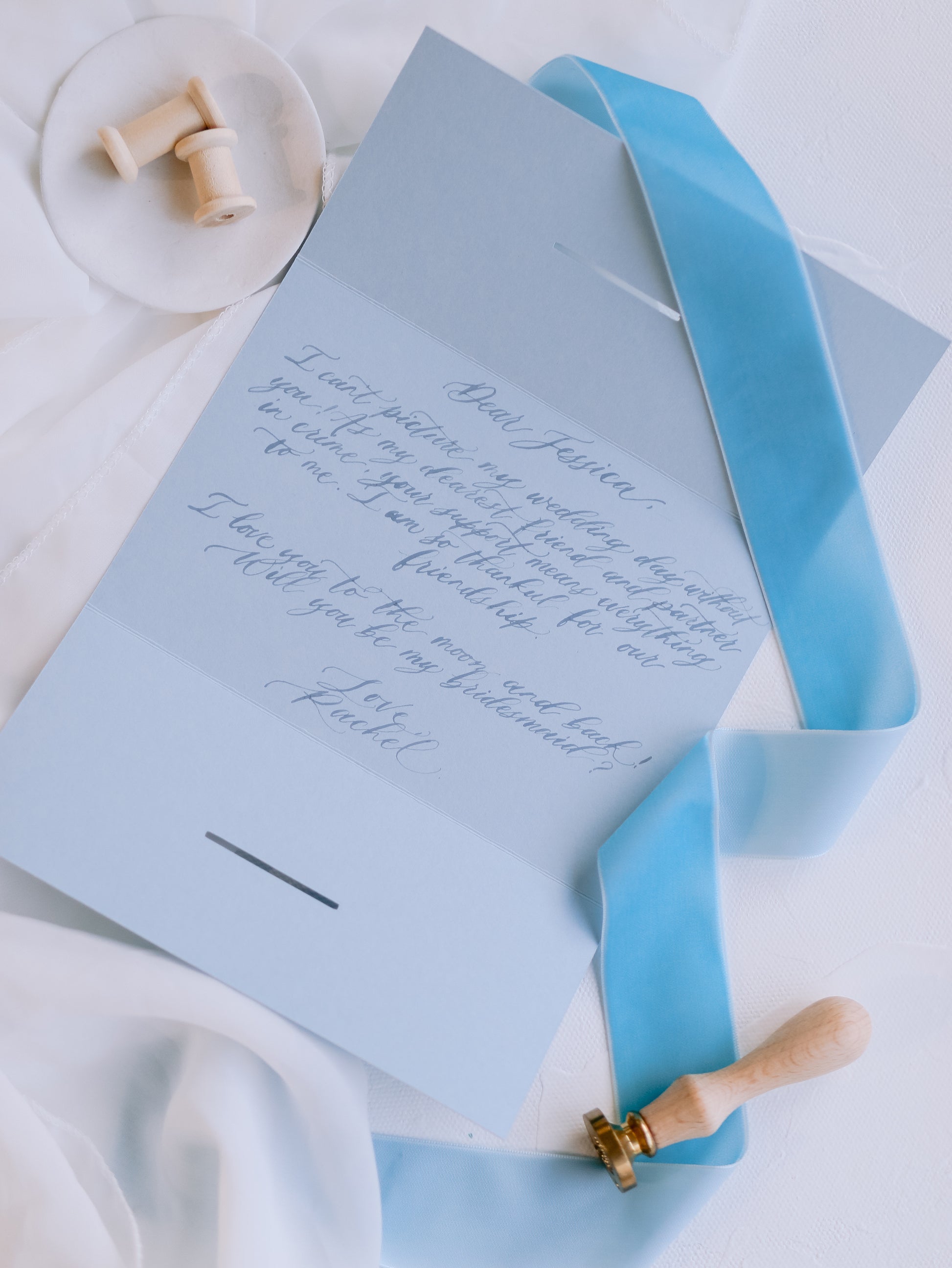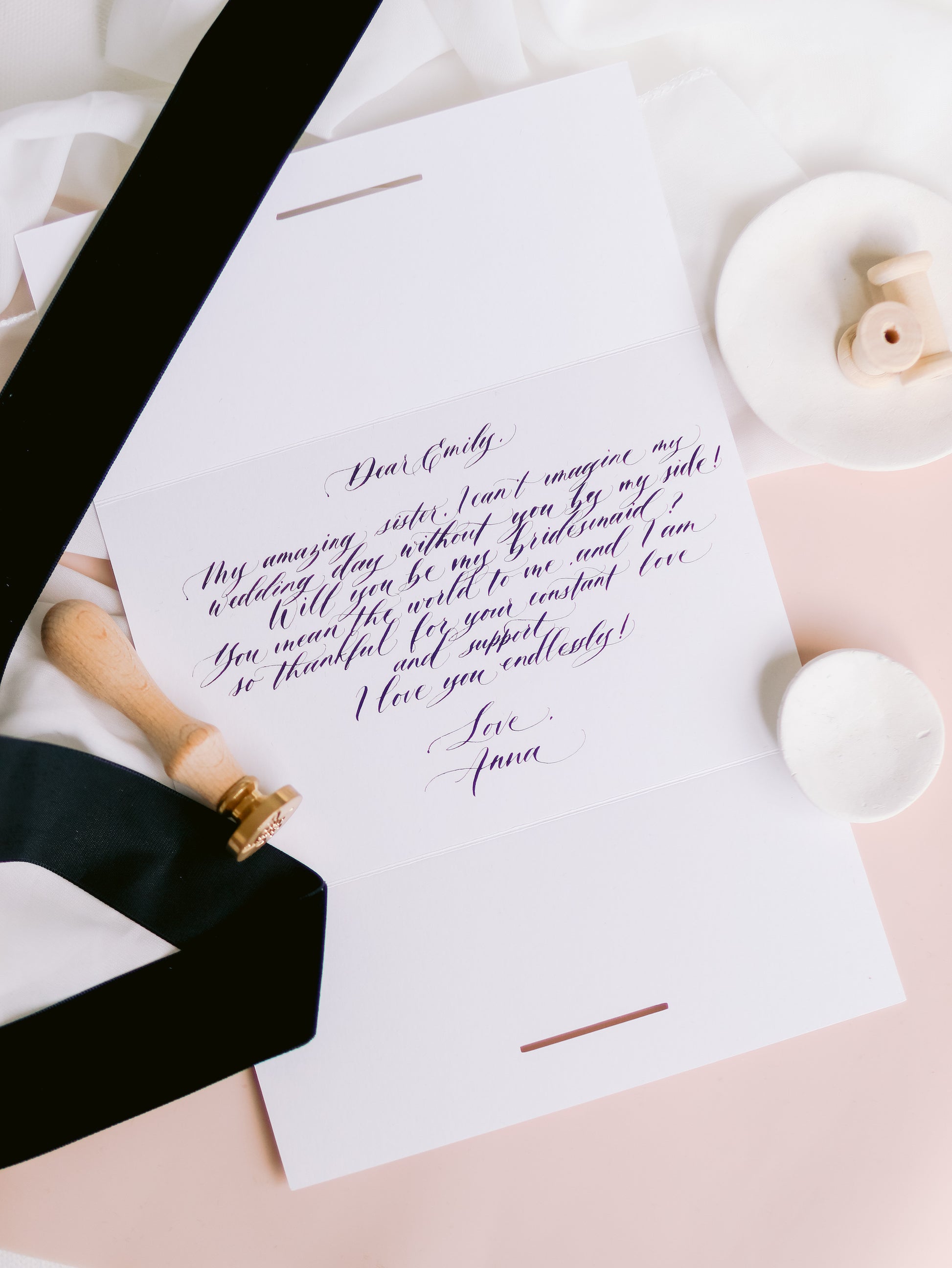 BRIDESMAID PROPOSAL CARDS WITH CALLIGRAPHY & VELVET RIBBON