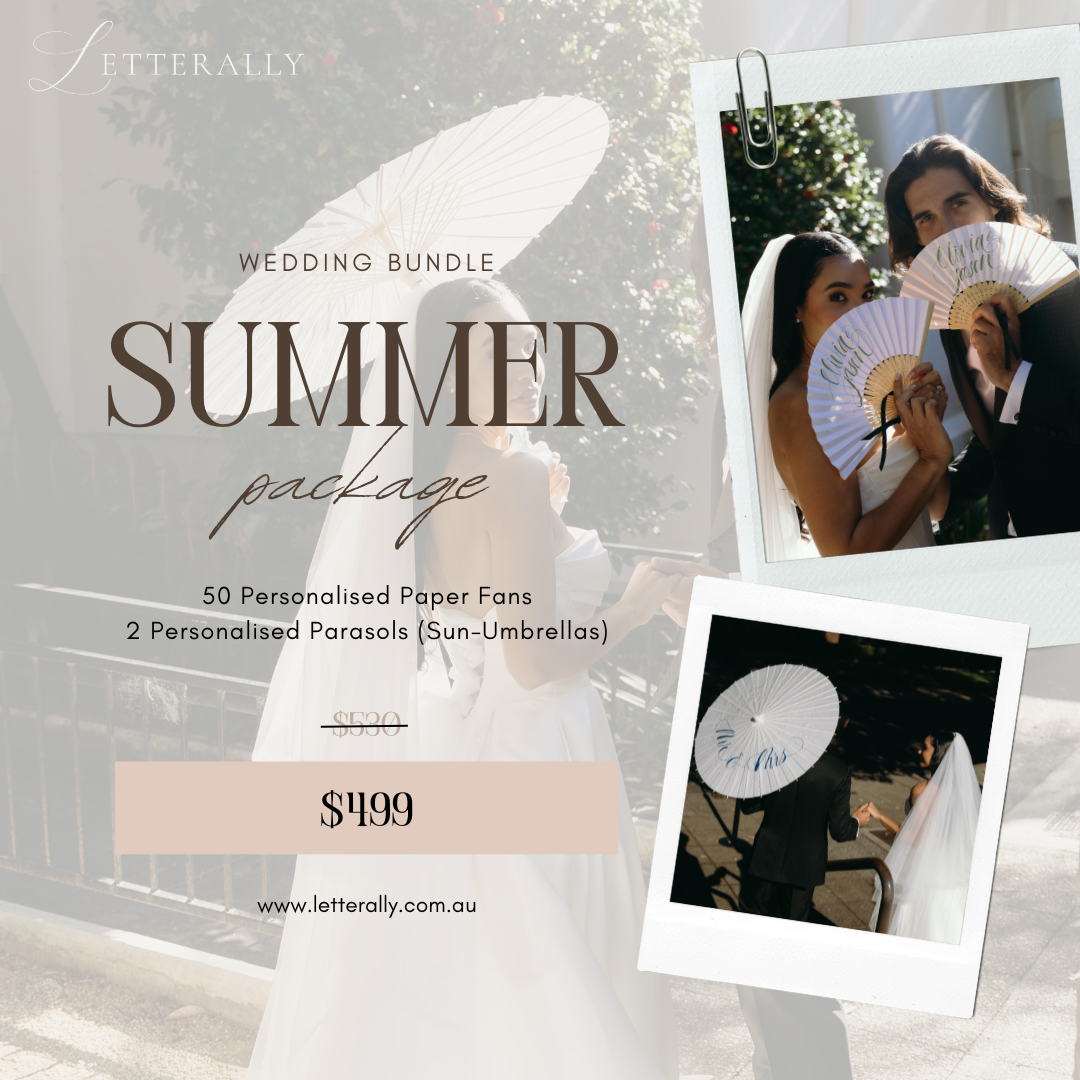 SUMMER BUNDLE (50 PERSONALISED FANS + 2 PERSONALISED PARASOLS)